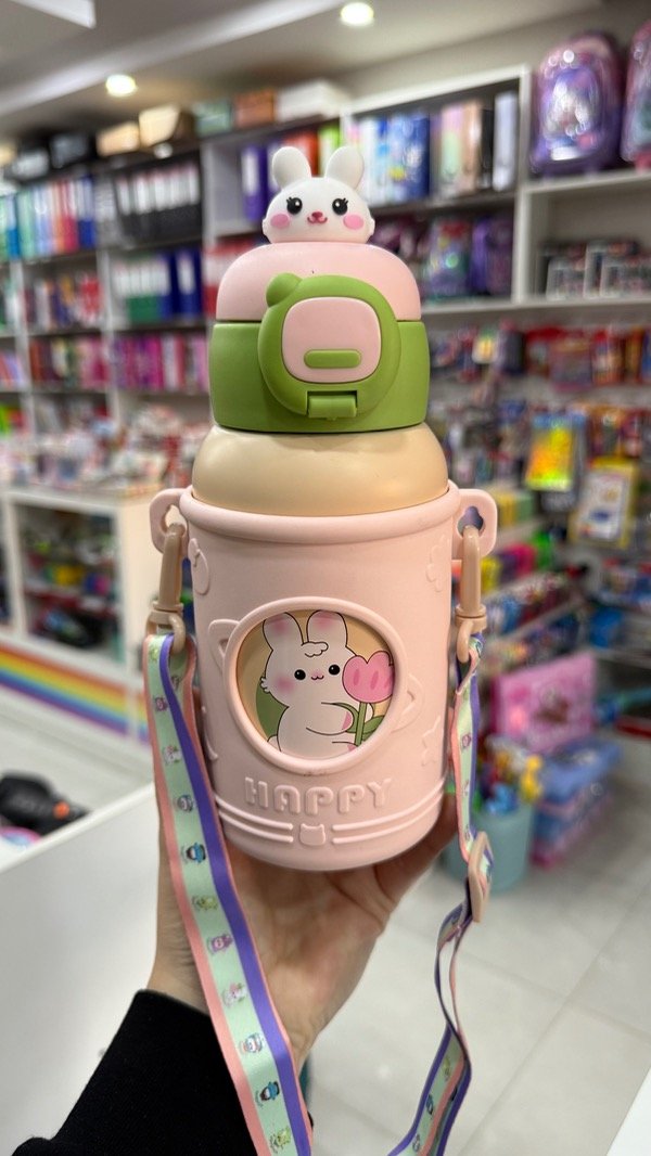 BOTELLA TÉRMICA KAWAI CON FUNDA Y CORREA