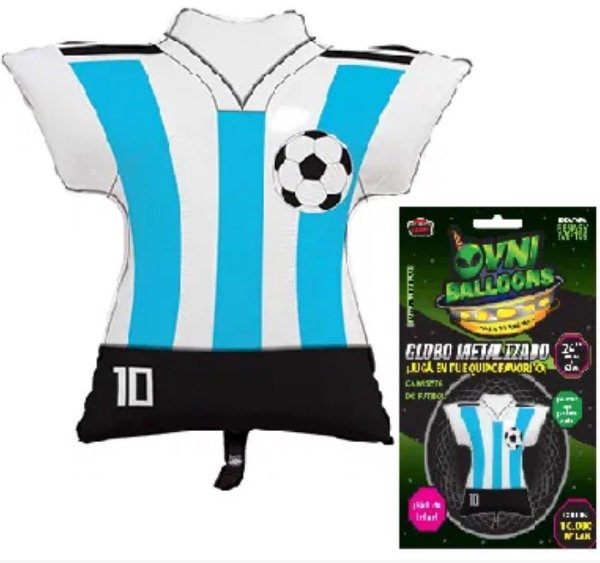 GLOBO METALIZADO 24" CAMISETA FUTBOL CELESTE Y BLANCA