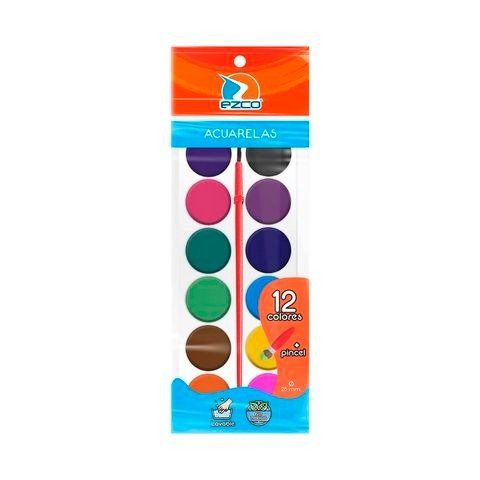 ACUARELA 12 COLORES CON PINCEL BLISTER EZCO